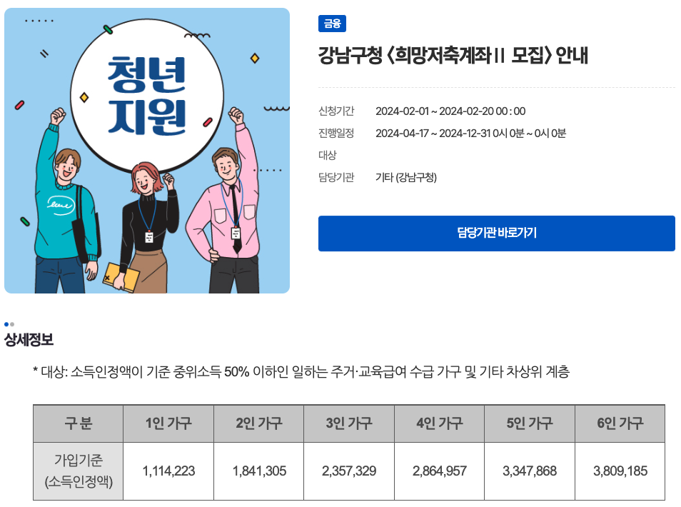 안녕하세요! 강남구청에서는 2024년 희망저축계좌Ⅱ를 모집하고 있습니다.