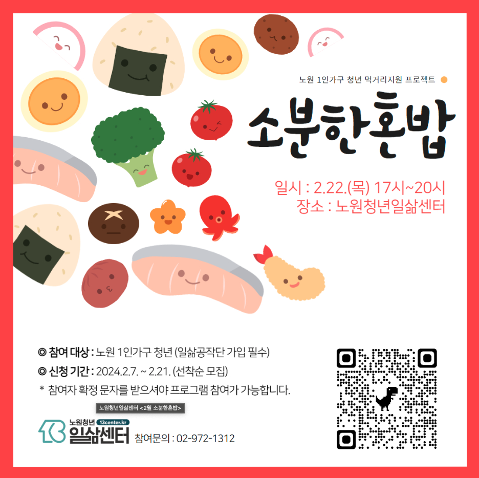 노원청년일삶센터 2월 소분한혼밥 신청방법