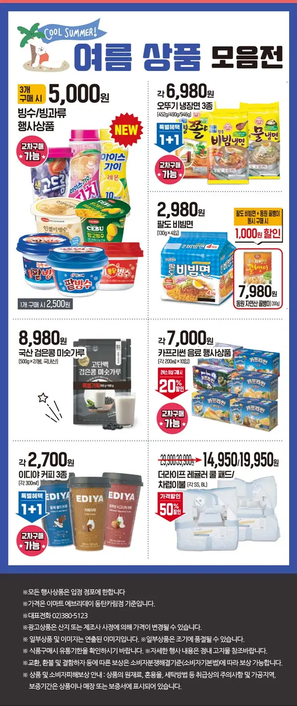 - 빙수/빙과류 행사상품: 3개 구매 시 5,000원